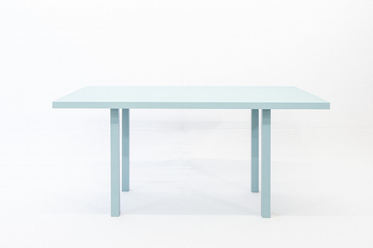 Tischfuss Buche massiv, Oberfläche Tischkante und Tischbein in Linoleumfarbton gestrichen