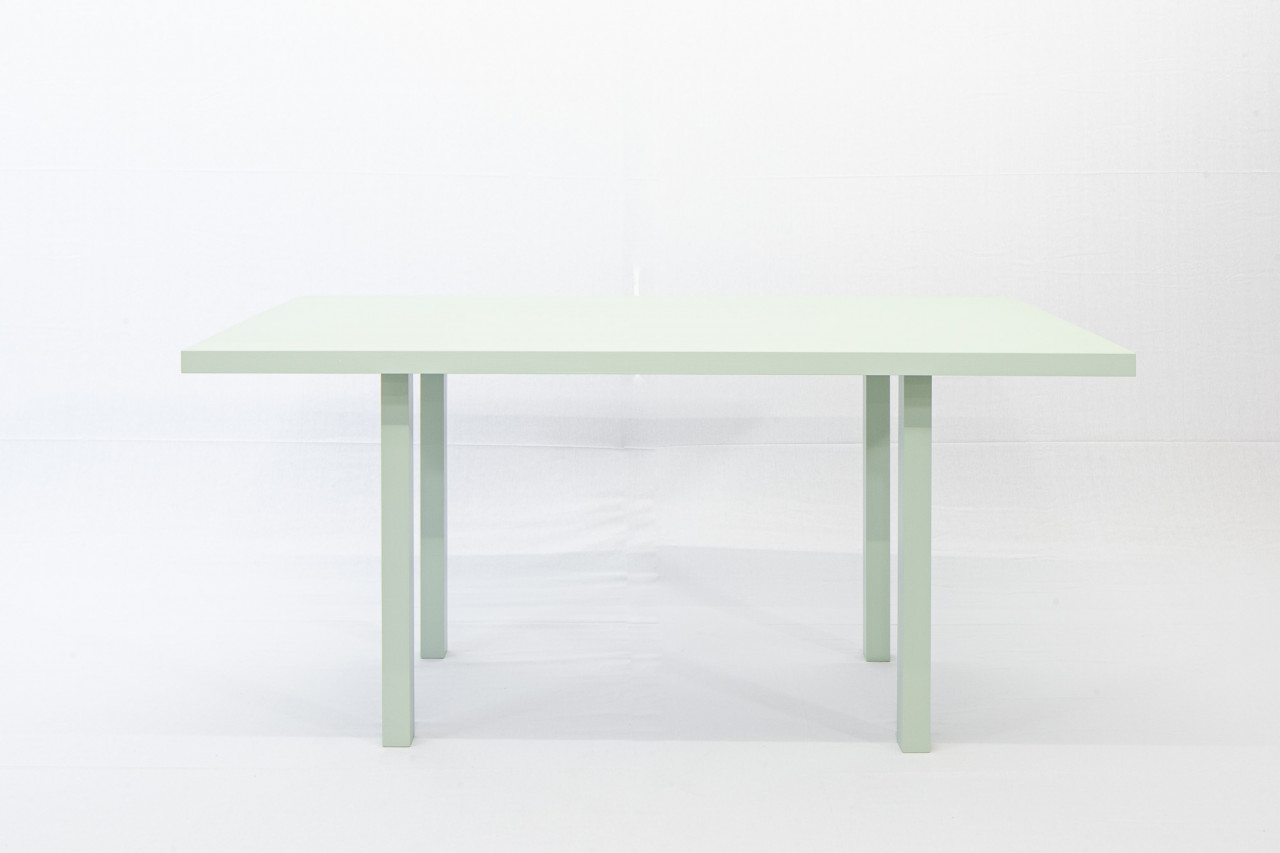 Tischfuss Buche massiv, Oberfläche Tischkante und Tischbein in Linoleumfarbton gestrichen
