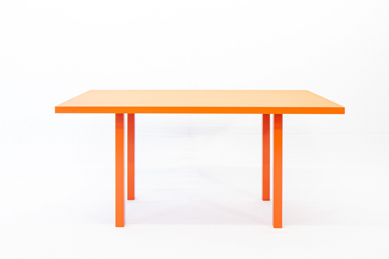 Tischfuss Buche massiv, Oberfläche Tischkante und Tischbein in Linoleumfarbton gestrichen