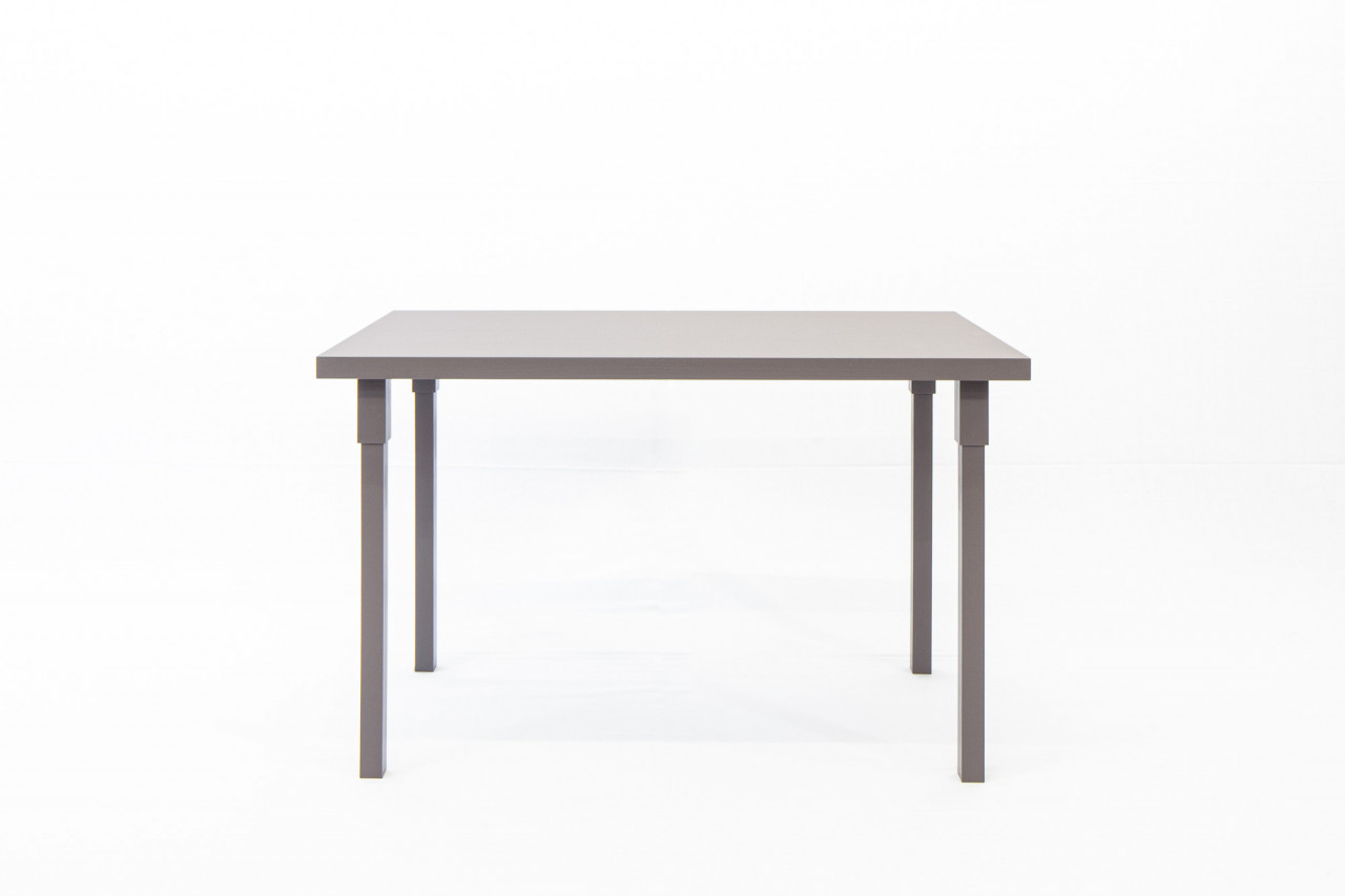 Tischfuss Buche massiv, Oberfläche Tischkante und Tischbein in Linoleumfarbton gestrichen