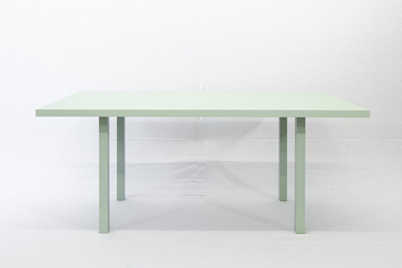 Tischfuss Buche massiv, Oberfläche Tischkante und Tischbein in Linoleumfarbton gestrichen