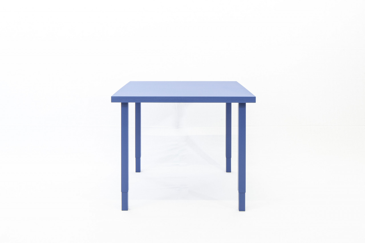 Tischfuss Buche massiv, Oberfläche Tischkante und Tischbein in Linoleumfarbton gestrichen