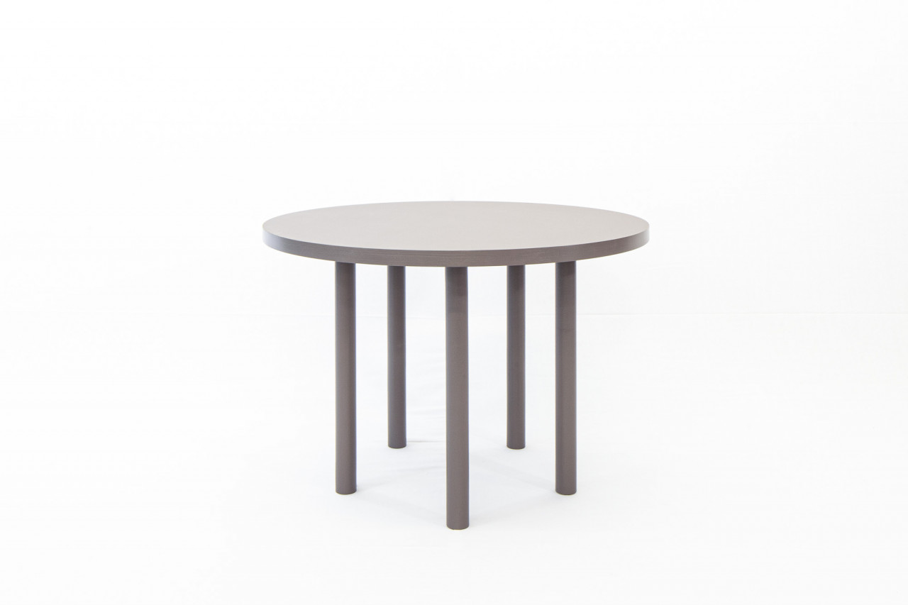 Tischfuss Buche massiv, Oberfläche Tischkante und Tischbein in Linoleumfarbton gestrichen