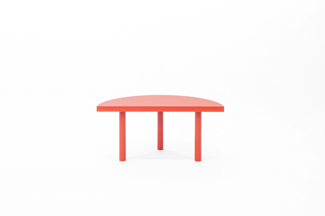 Tisch Halbrund tief900x450x300mmPreis inkl. 8.1% MWST, CHF 520.00Linoleumfarbe: 4164 salsaTischplatte Fichte-Stäbchenplatte, einseitig mit Linoleum belegtTischfuss Buche massiv, Oberfläche Tischkante und Tischbein in Linoleumfarbton gestrichen