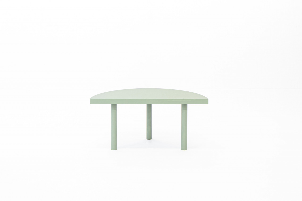 Tisch Halbrund tief900x450x300mmPreis inkl. 8.1% MWST, CHF 520.00Linoleumfarbe: 4184 oliveTischplatte Fichte-Stäbchenplatte, einseitig mit Linoleum belegtTischfuss Buche massiv, Oberfläche Tischkante und Tischbein in Linoleumfarbton gestrichen