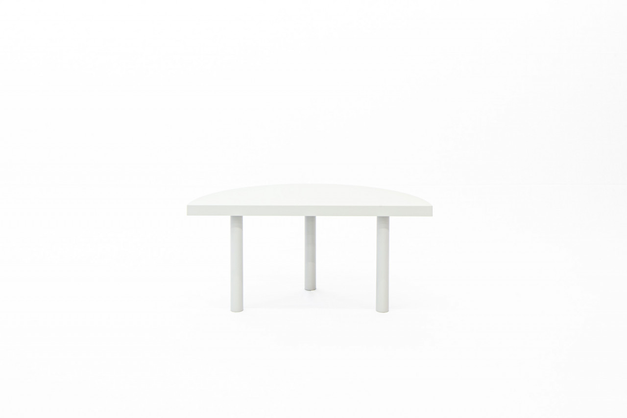 Tischfuss Buche massiv, Oberfläche Tischkante und Tischbein in Linoleumfarbton gestrichen