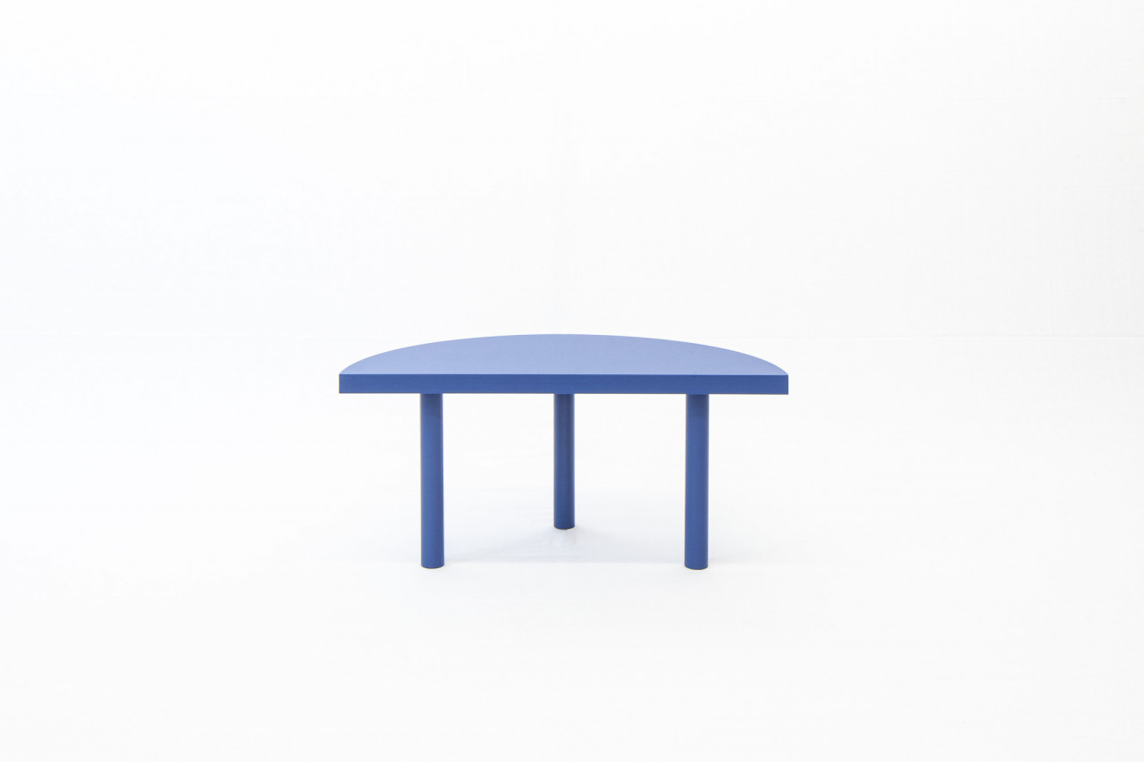 Tischfuss Buche massiv, Oberfläche Tischkante und Tischbein in Linoleumfarbton gestrichen