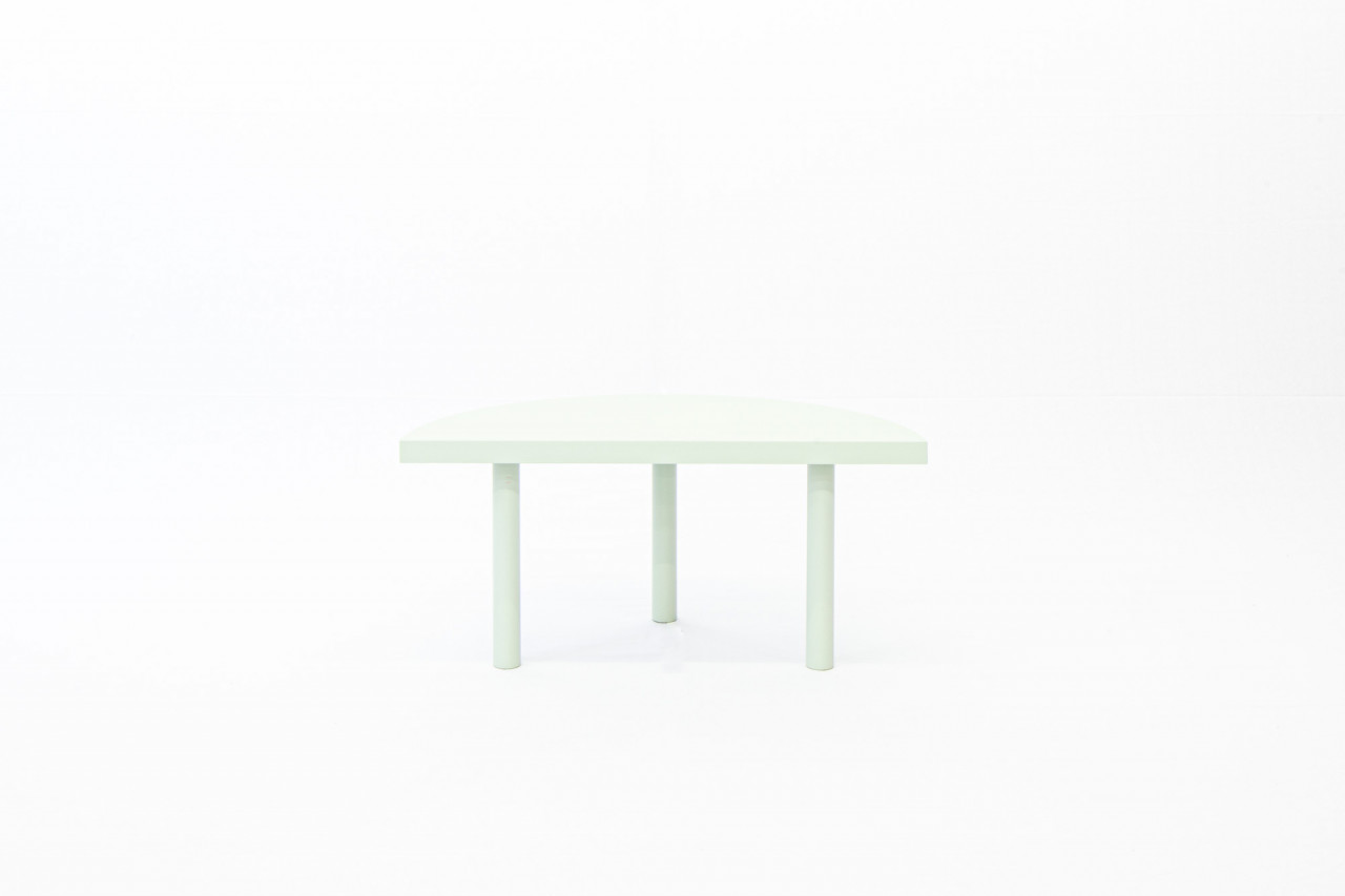 Tischfuss Buche massiv, Oberfläche Tischkante und Tischbein in Linoleumfarbton gestrichen