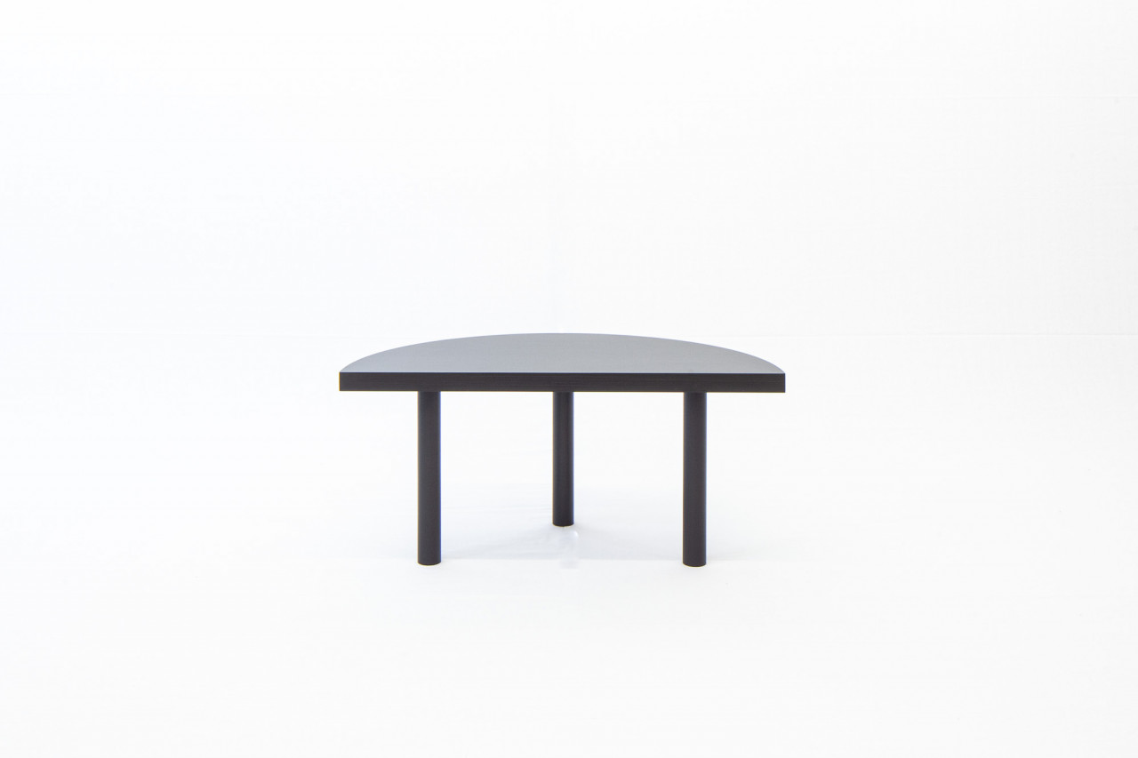 Tisch Halbrund tief900x450x300mmPreis inkl. 8.1% MWST, CHF 520.00Linoleumfarbe: 4023 neroTischplatte Fichte-Stäbchenplatte, einseitig mit Linoleum belegtTischfuss Buche massiv, Oberfläche Tischkante und Tischbein in Linoleumfarbton gestrichen