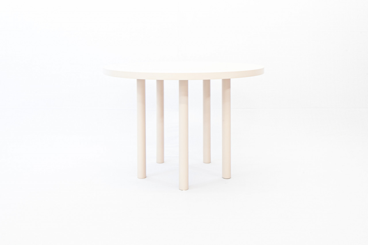 Tischfuss Buche massiv, Oberfläche Tischkante und Tischbein in Linoleumfarbton gestrichen