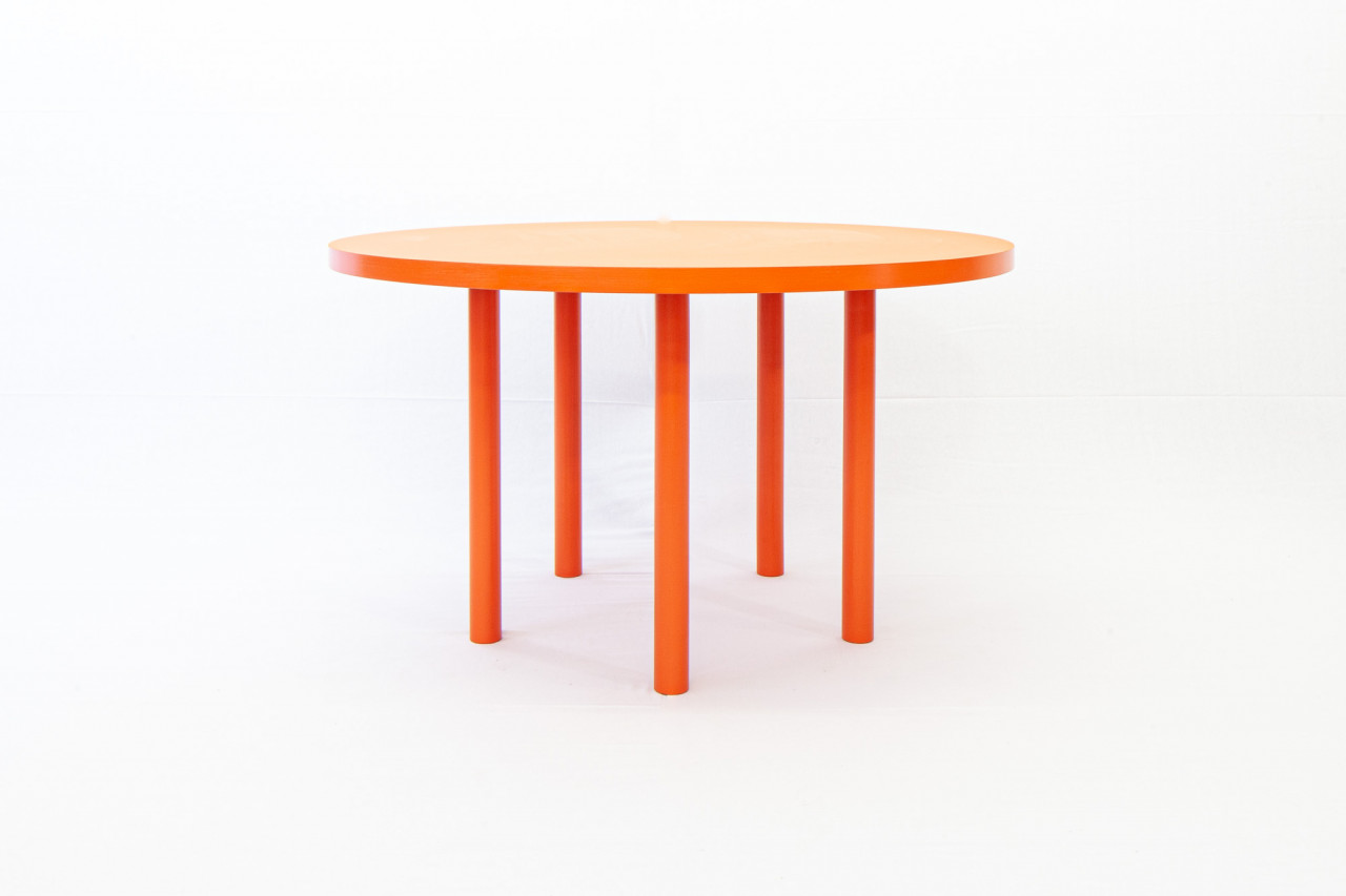 Tischfuss Buche massiv, Oberfläche Tischkante und Tischbein in Linoleumfarbton gestrichen